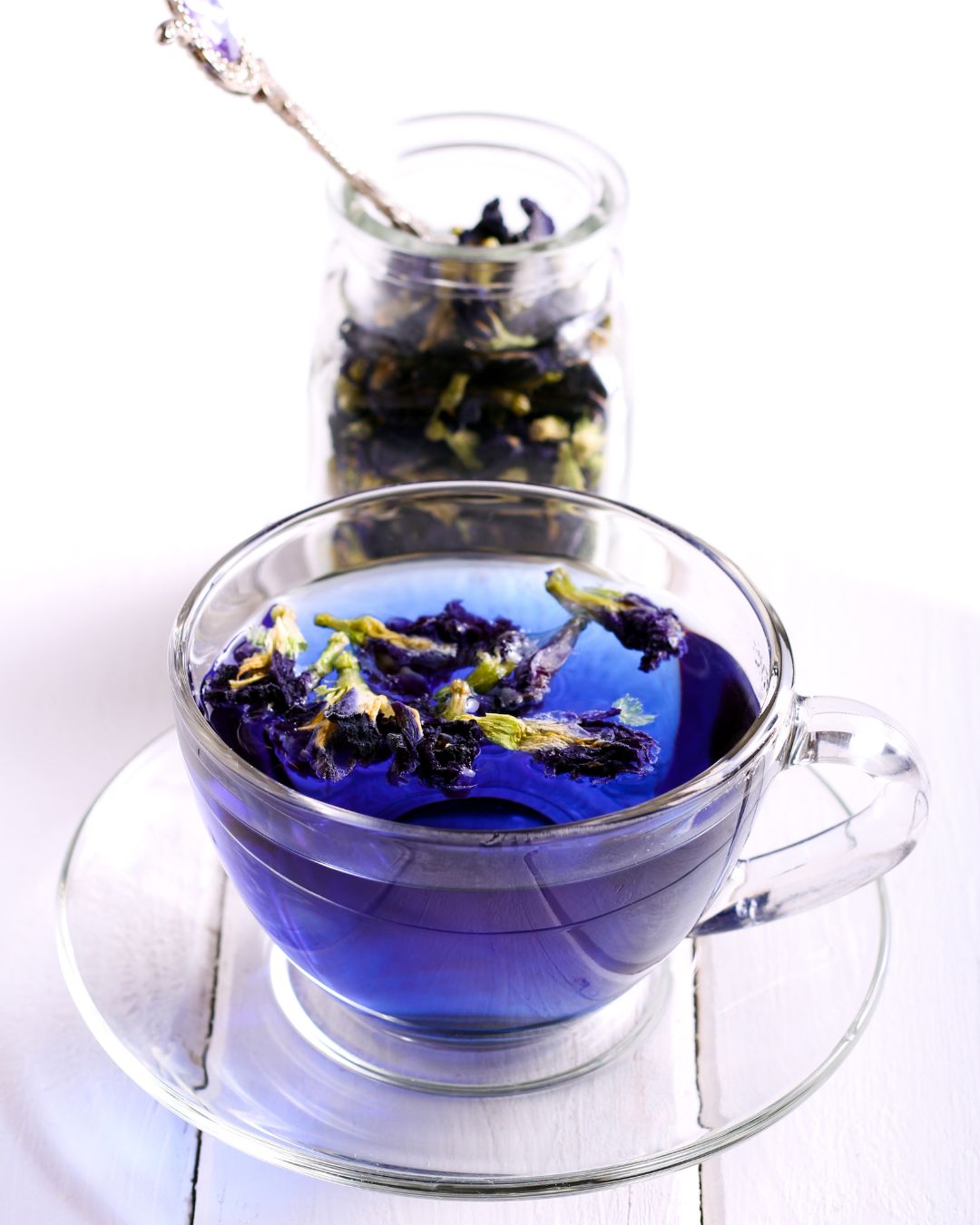 - Add 2 teaspoons of Blue Pea and Mint tea